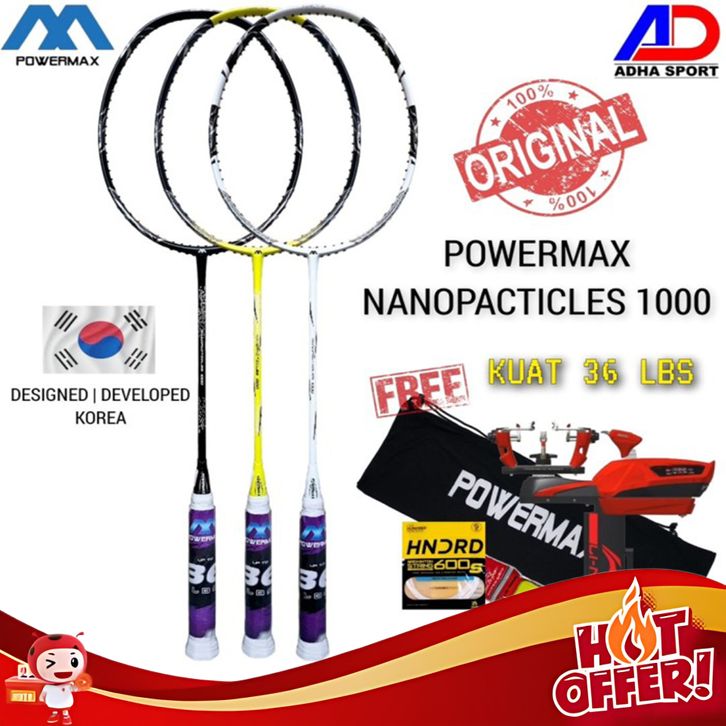 Promo- RAKET BADMINTON POWERMAX NANOPACTICLES 1000 ORIGINAL RAKET BULUTANGKIS - BLACK, BATANGAN