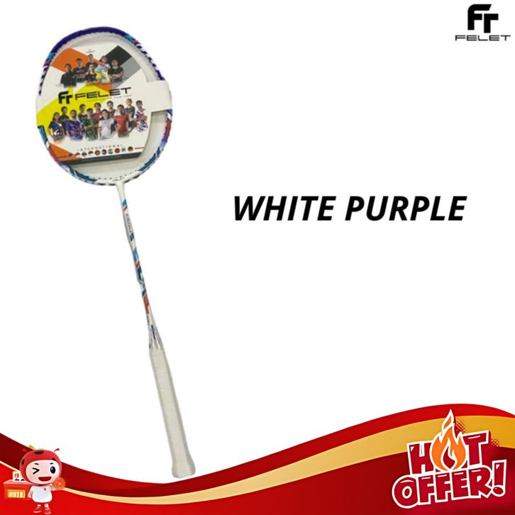Promo- RAKET FELET BADMINTIN BULUTANGKIS FELET KISONA 21 ORIGINAL - WHITE PURPLE, RAKET+TAS COVER