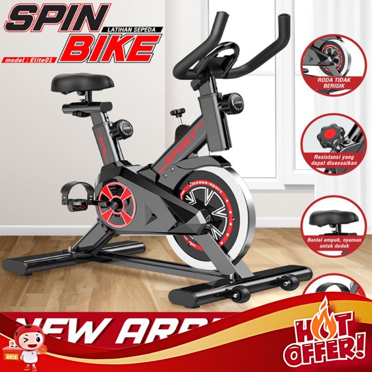 Promo- BG SPORT SEPEDA STATIS SPIN BIKE MODEL ELITE ALAT FITNESS GYM AT HOME - ELITE01 BLACK, NORMAL PACKAGIN