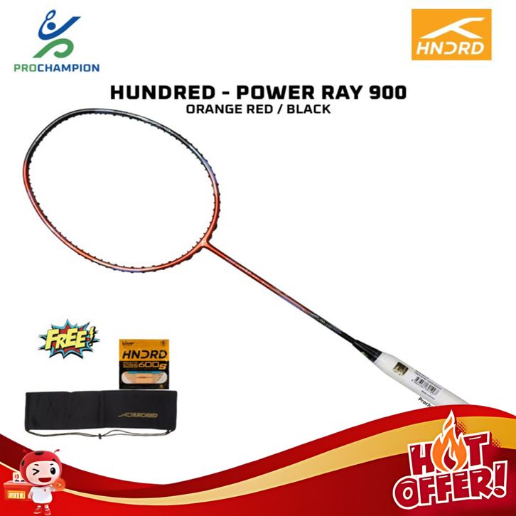 Promo- NEW ! RAKET BADMINTON HUNDRED HNDRD POWER RAY 900 ORANGE RED BLACK