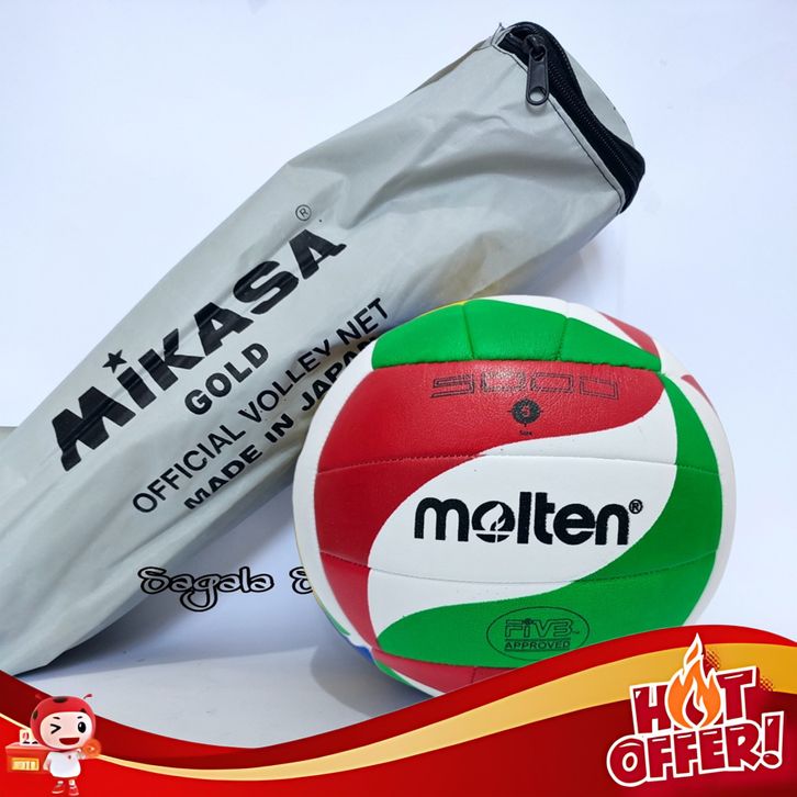 Promo- 1 Set Bola Volly Voli Dan Net Mikasa Molten Original Training Match Official Size 5