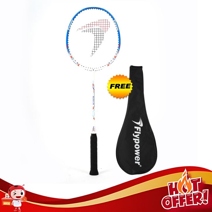 Promo- Flypower Raket Badminton Nusa 28 White Termasuk Senar Plus Cover | Raket Murah Berkualitas I Raket 1 Set | Free