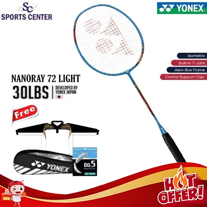 Promo- NEW FULL SET RAKET BADMINTON YONEX NANORAY 72 LIGHT ( 5U G5 ) - GREY