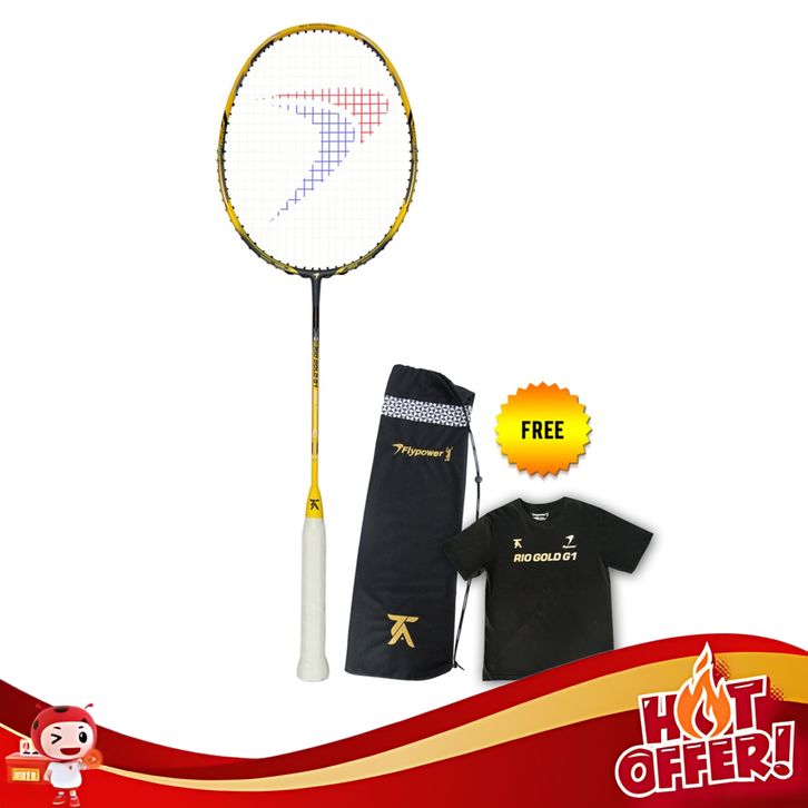 Promo- Flypower Rio Gold G1 Raket Badminton - Yellow Grey Free Cover Kain + Kaos Tontowi Ahmad Series