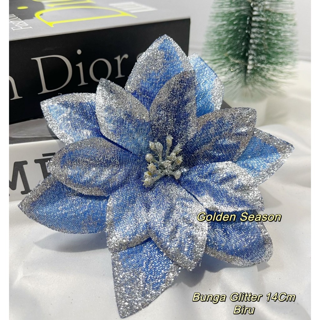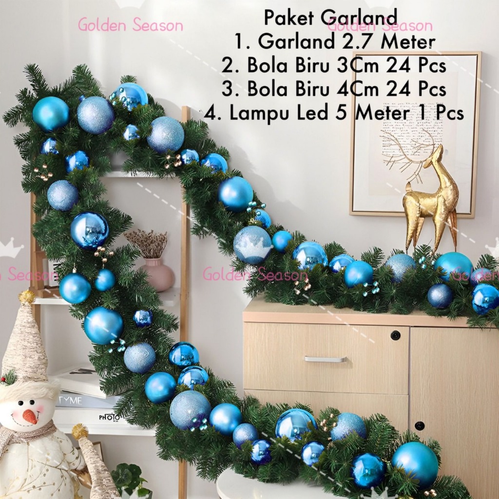 ALL BLUE CHRISTMAS ACCESORIES - Dekorasi NATAL NUANSA BIRU - BOLA BUNGA GARLAND PITA