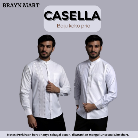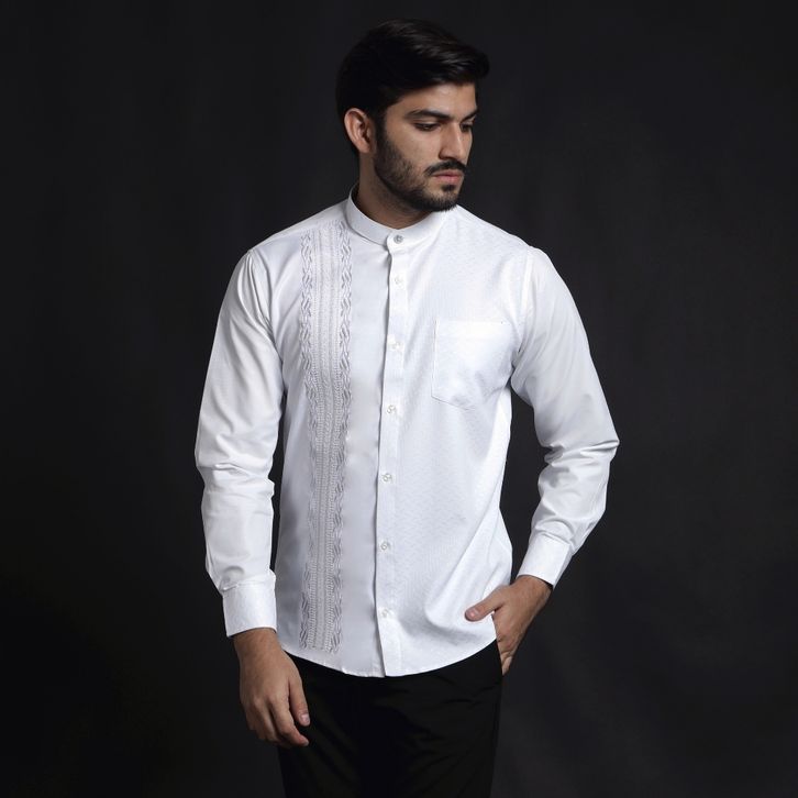 Casella Baju Koko Pria Lengan Panjang Arabesque Embroidery White Design | Baju Koko Putih Lengan Panjang
