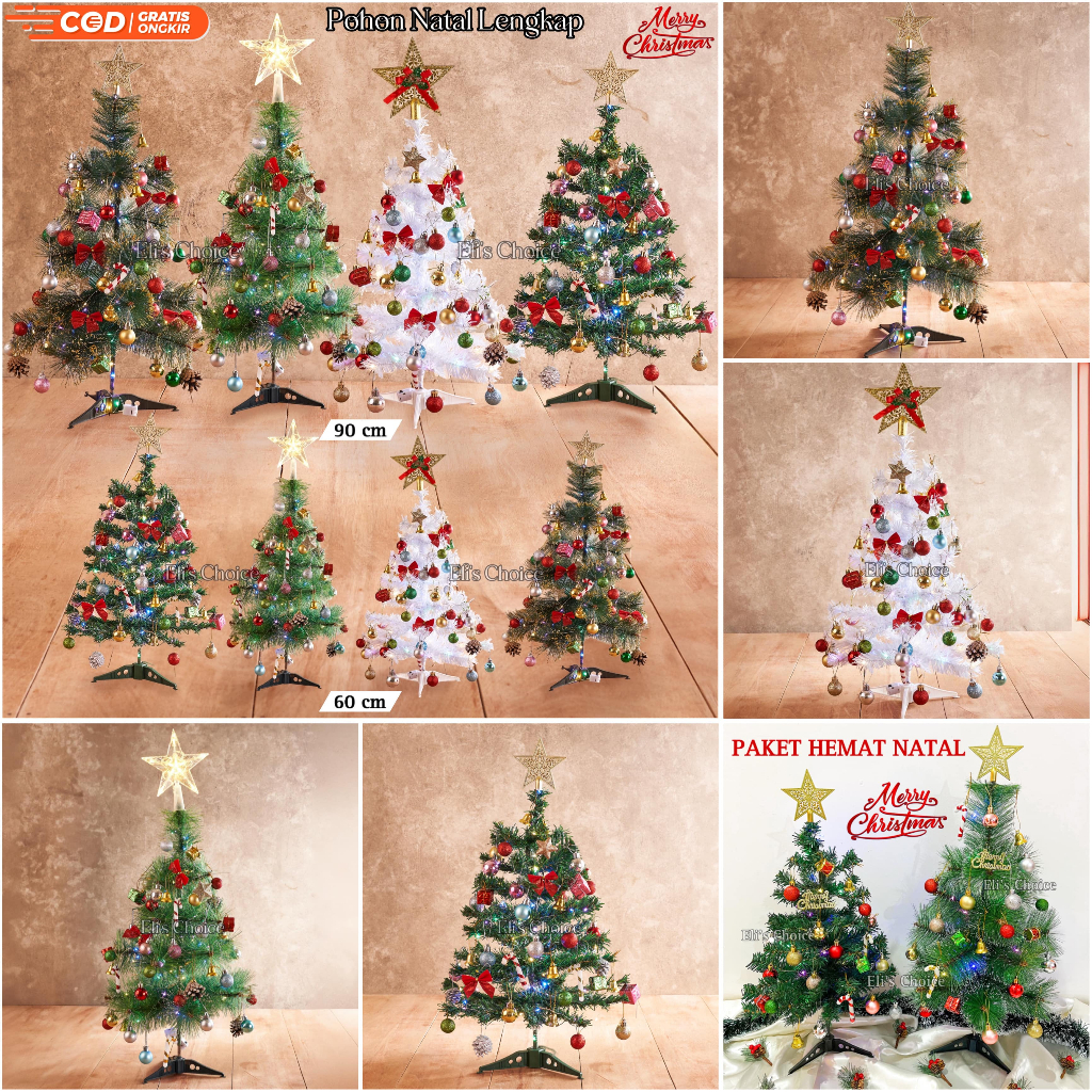 GROSIR Pohon Natal PAKET LENGKAP Beserta Aksesoris Pohon Natal Hijau Salju Putih Gold Portable