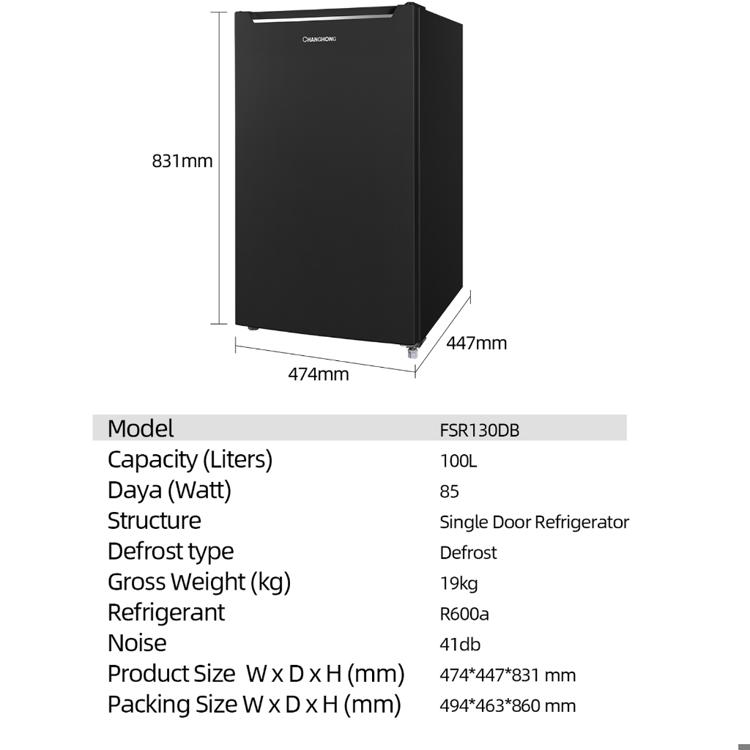 New Changhong Kulkas 1 pintu (Refrigerator) Lemari Es Kapasitas 100 Liter – Black FSR130DB (Semi Auto-Defrost ) (Ajustab