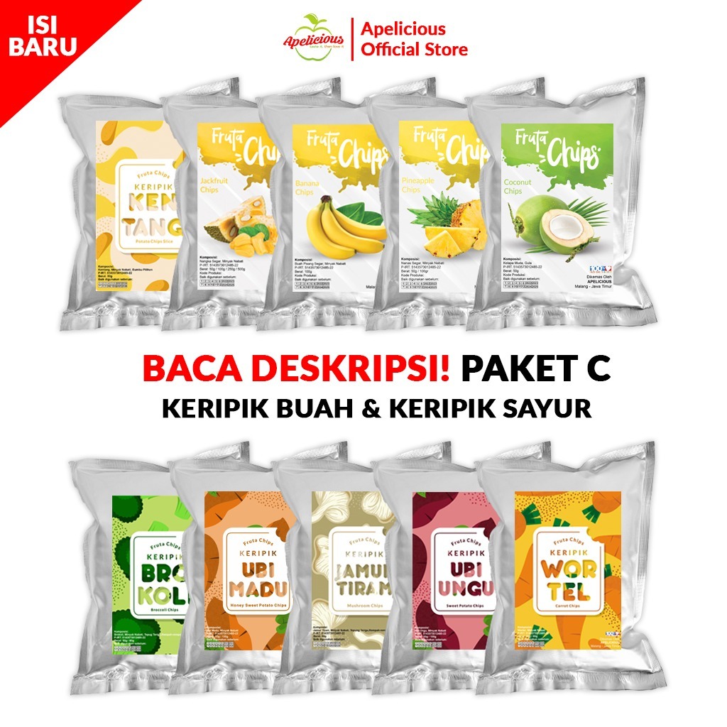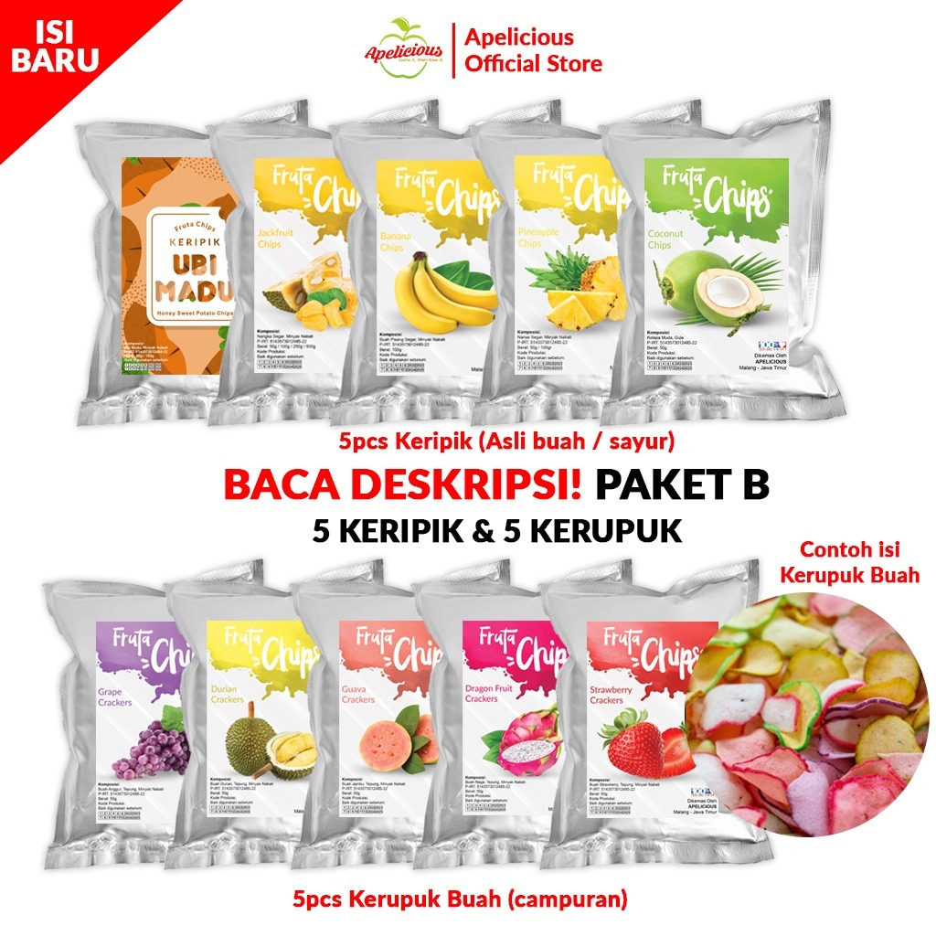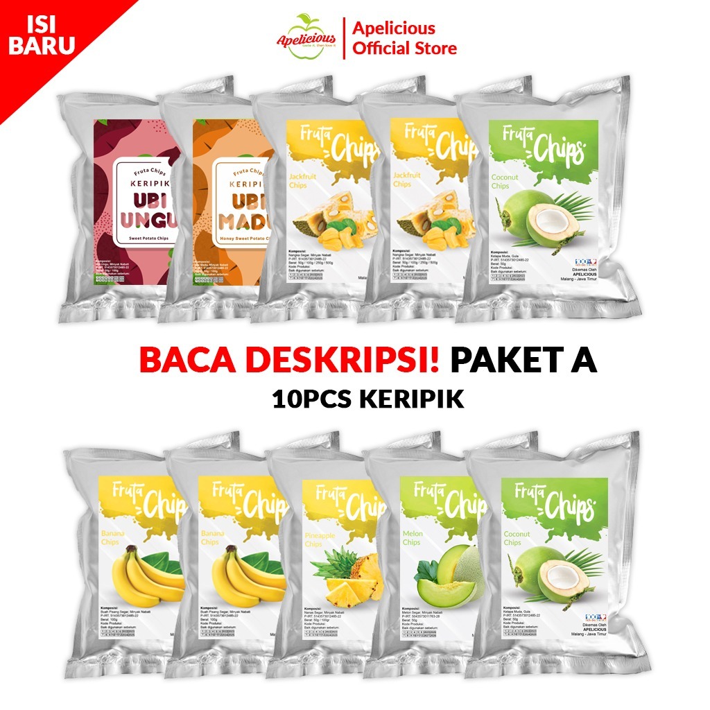 CEMILAN APELICIOUS BARU PAKET HEMAT 10PCS KERIPIK (BUAH, SAYUR, KRUPUK BUAH)