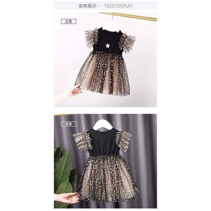 Dress Black Mamba Star Gold Anak Perempuan 0-9 Tahun Rok Gradasi Hitam Bahan Tile Halus Gaun Manis