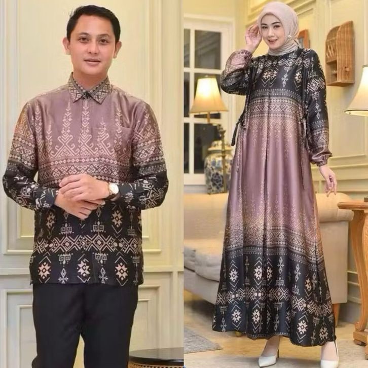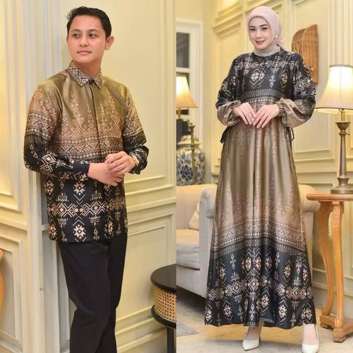 Couple Dress SYAMEERA Bahan Silk Premium Set Pasangan Atasan kemeja | Gamis Motif Elegan silk Premium Gamis Couple
