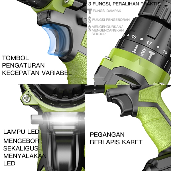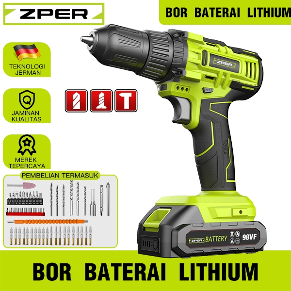 ZPER Bor Listrik Mesin Bor Bor Tanpa Kabel Bor Tangan Elektrik Drill Bor Impact Cordless ZP032