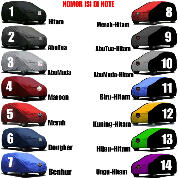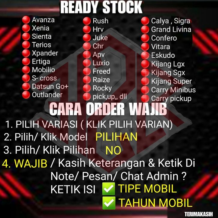 Amoda 5, Avanza 2002-2010, Avanza 2011-2021, BR-V Lama, CRV Gen3/Kura-Kura, Calya / Sigra, Carry Futura, Confero, Ertiga 2012-2017, Ertiga 2018-2023, Feroza, Ford Eco Sport, Grand Livina L11, Grand Vitara Lama, GrandLivina XV-SVL10, Grandis, HR-V Lama, Hyundai Creta, Innova Lama, Kjg LGX/ Kjg Super, Livina 5Seater/Short, Luxio/GrandMax/APV, Mazda CX3, Mobil Lain Chat ADM, Mobilio Lama, New Avanza 2022-2024, New BR-V, New Grand Vitara, New HR-V 2022-Skrg, New Livina, New Mobilio, New Rush 2018 - 2024, New Terios 2018-2024, New Xenia 2022-2024, Nissan Juke, Outlander, Panther Kotak, Raize, Rush Lama 2010-2017, SX4 X-Over / S-ross, Stargazer, Taruna Jenis ChatADM, Terios Lama2010-2017, VELOZ 2022 - 2024, WR-V, XL7, Xenia 2005-2021, Xforce, Xpander, Yaris Cross2022/2023