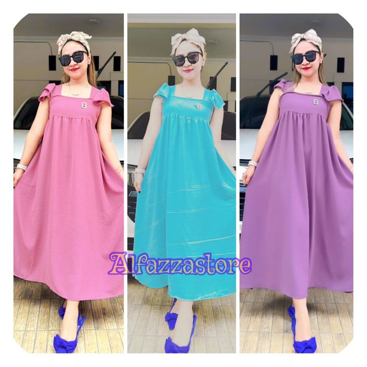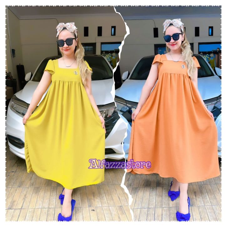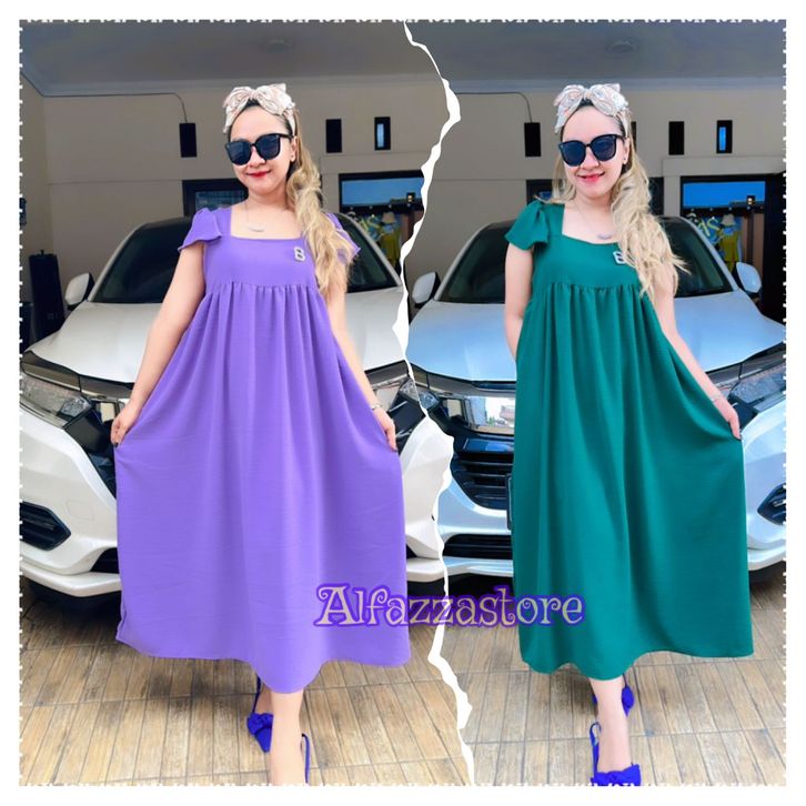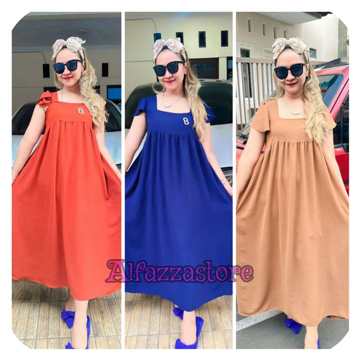 Alfazza Long Summer Dress Ruffle Babydoll Crinkle Airflow Daster Jumbo Outfit Pantai Bumil Kekinian