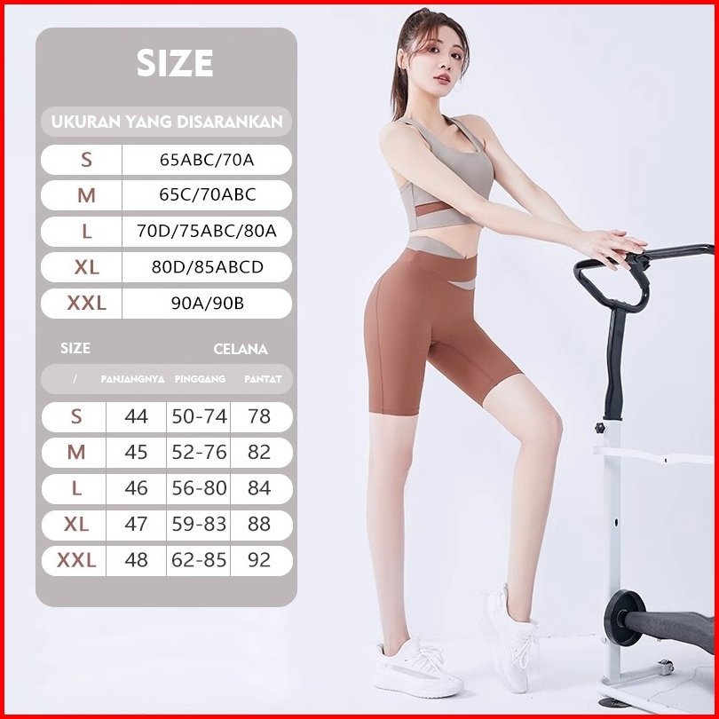 Setelan Baju Olahraga Wanita Sport Bra Celana Olahraga Wanita Kaos Bra Legging Pendek Yf056
