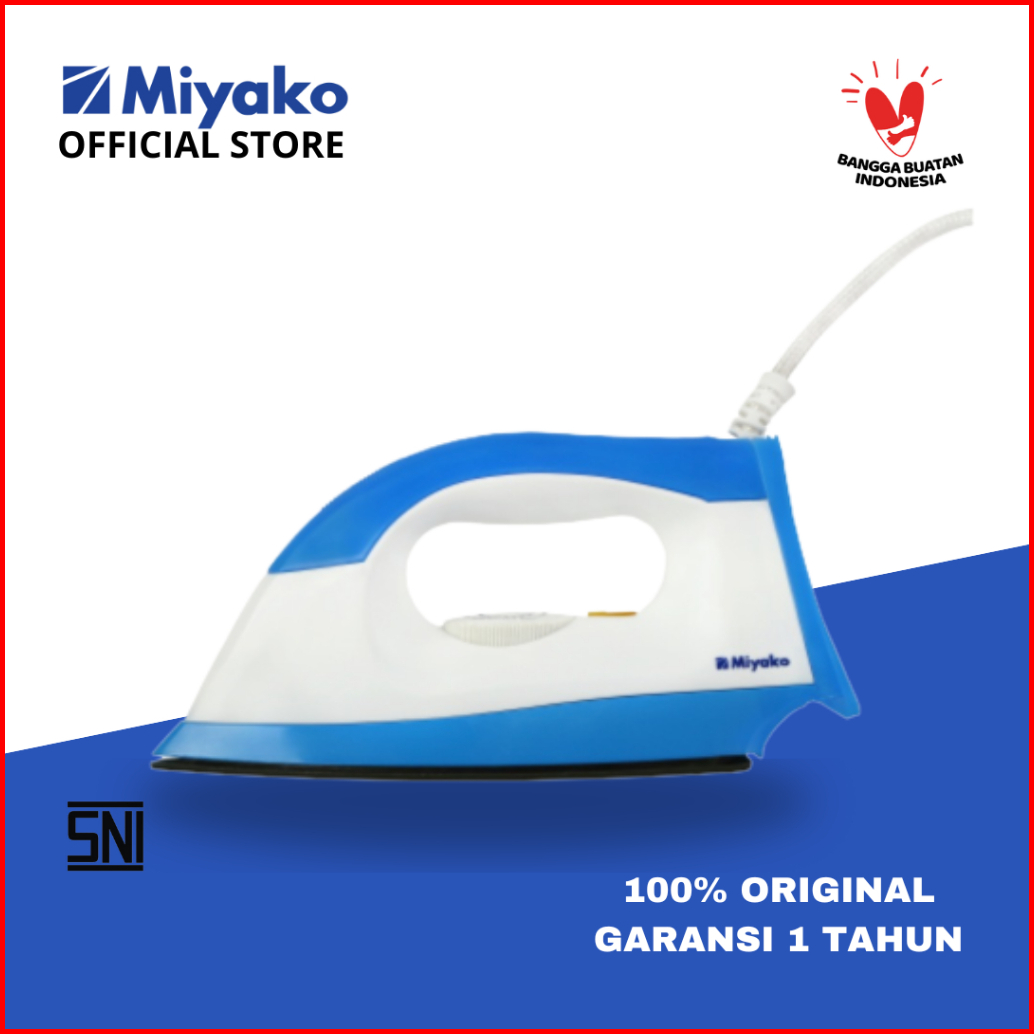 Setrika Miyako Blue Ei1000mbl Dry Iron 395 Watt - Anti Lengket