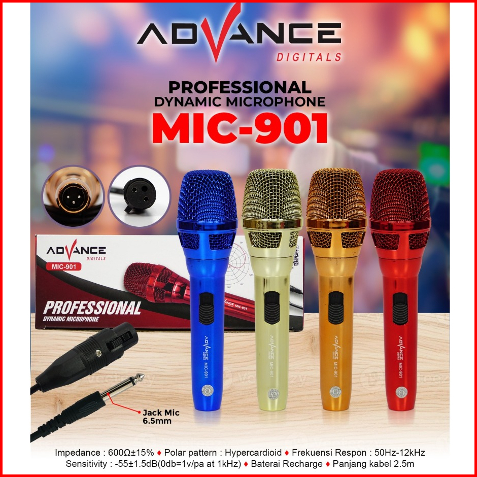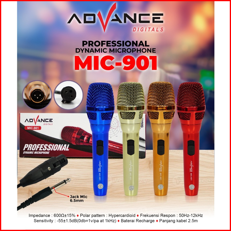 Advance Mic-901 Professional Dynamic Microphone Kabel 6 5mm Garansi Resmi 1 Tahun