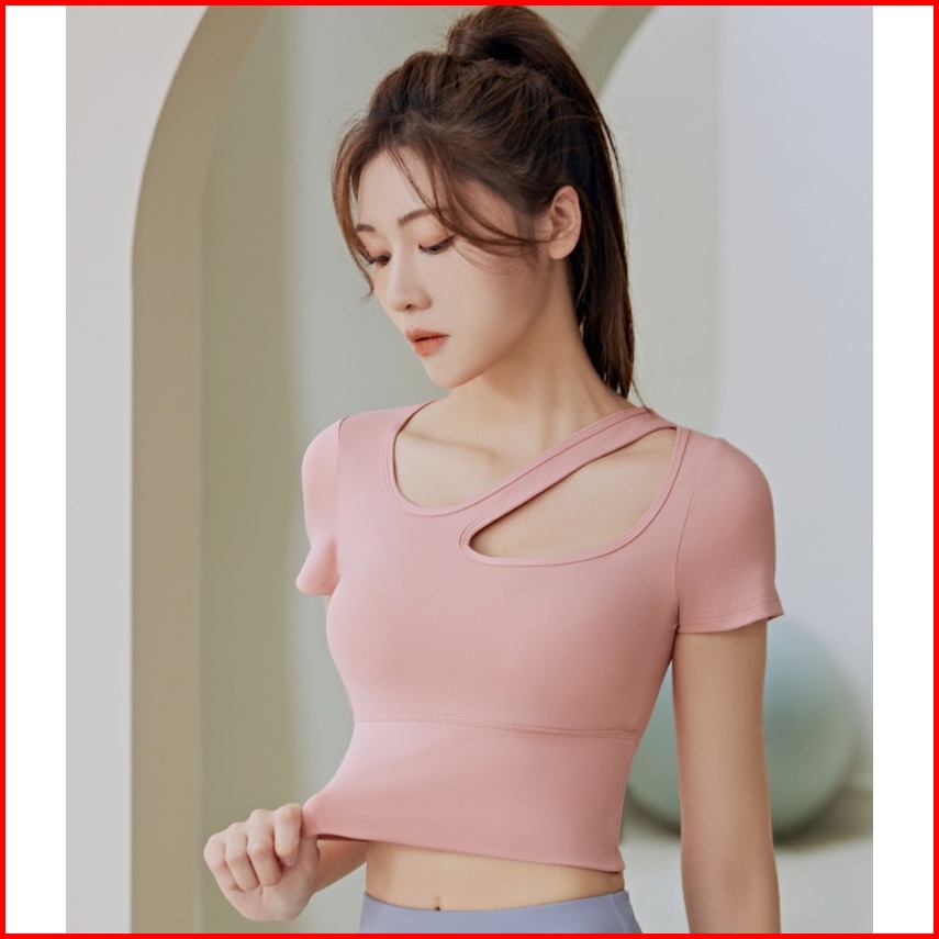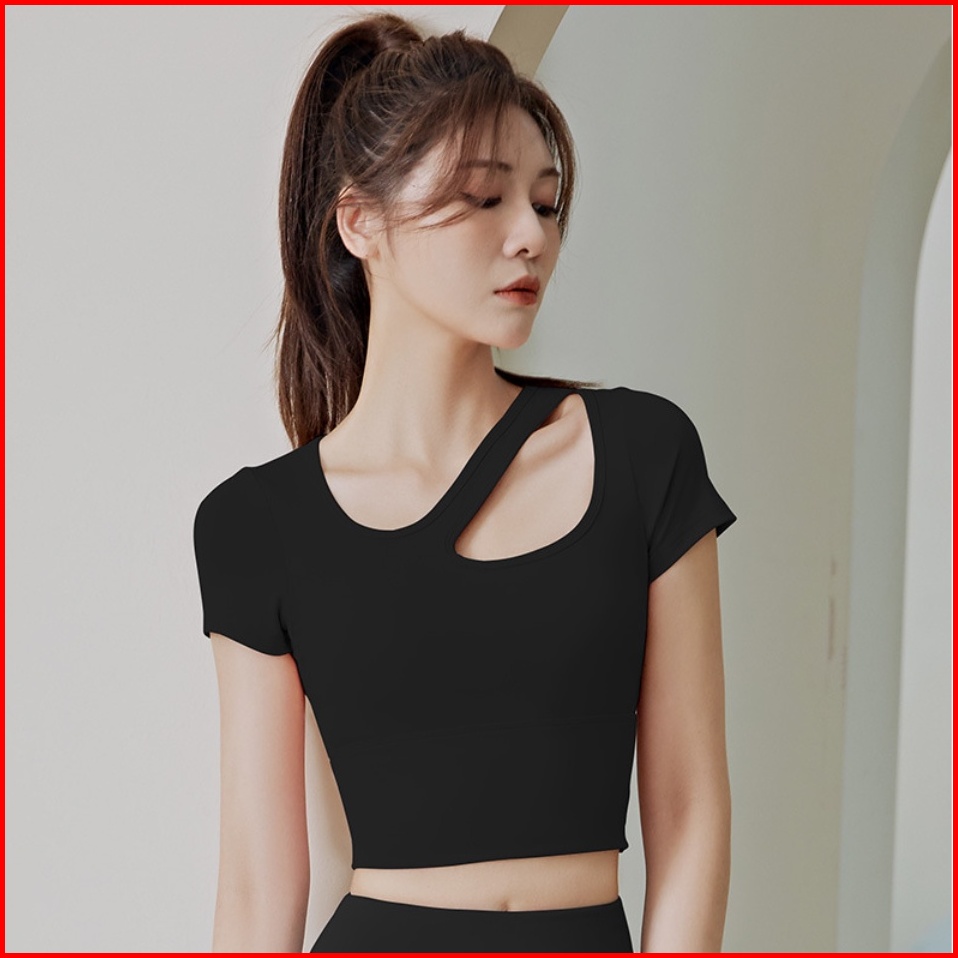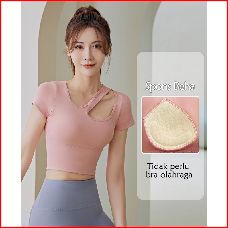 Atasan Olahraga Wanita Lengan Pendek Crop Top Yf053
