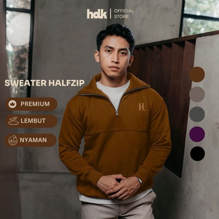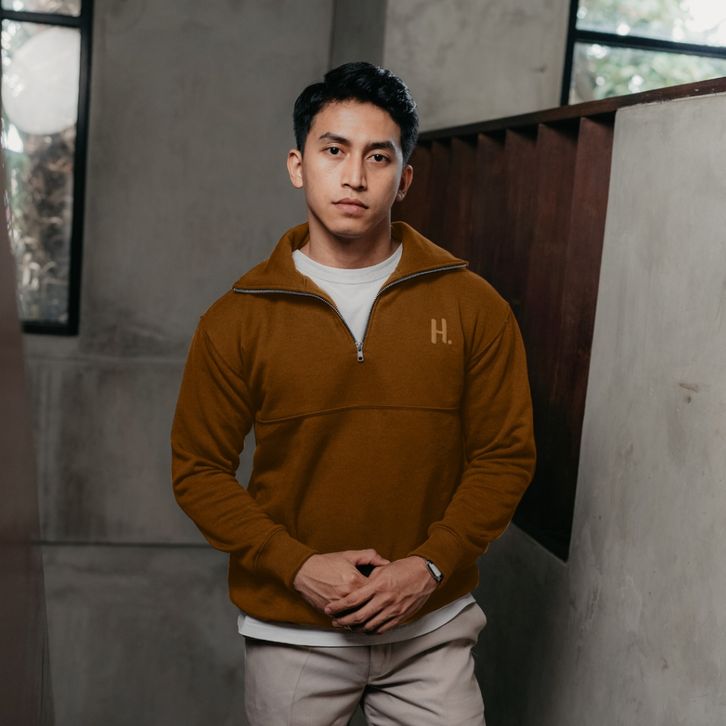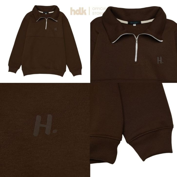 Hoodieku Halfzip Premium Crewneck Berkerah - BROWNIE
