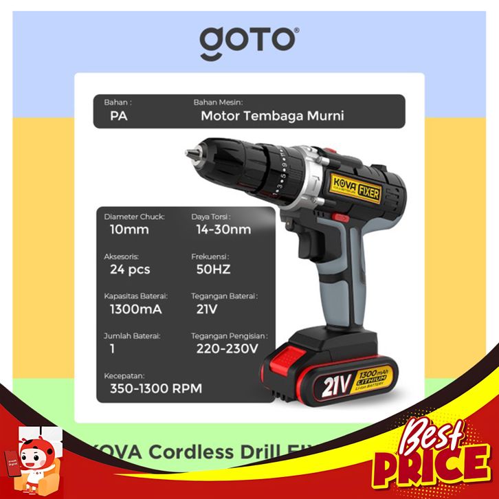 CICILAN/DP% KOVA FIXER CORDLESS DRILL 10MM SET MESIN BOR TANGAN BATERAI TEMBOK 21V