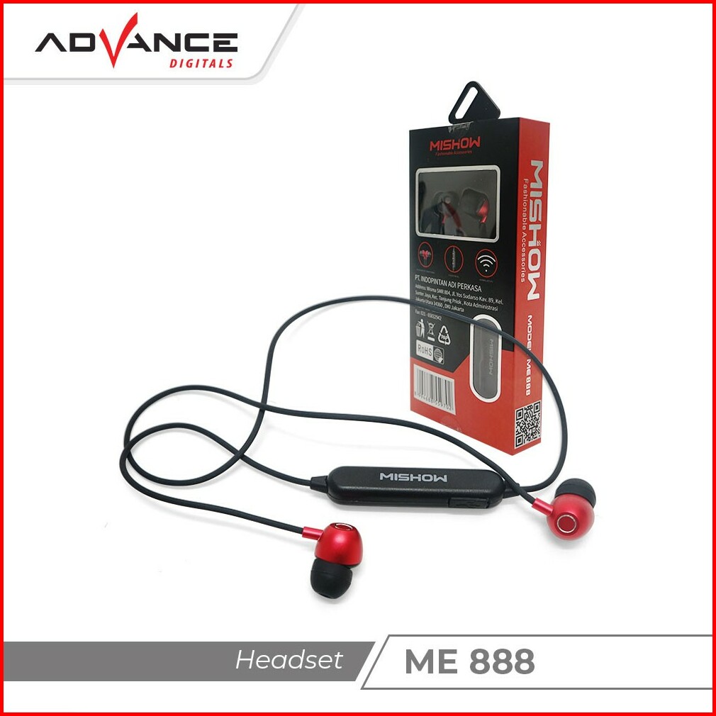 Advance Me888 - Wireless Earphone Bluetooth With Extreme Bass And Magnet Garansi Resmi Advance