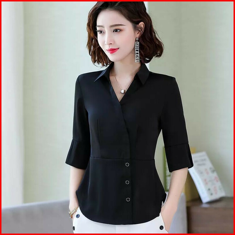 Calissa Fashion Pakaian Wanita Atasan Kemeja Casual Style Korea Model Haruka