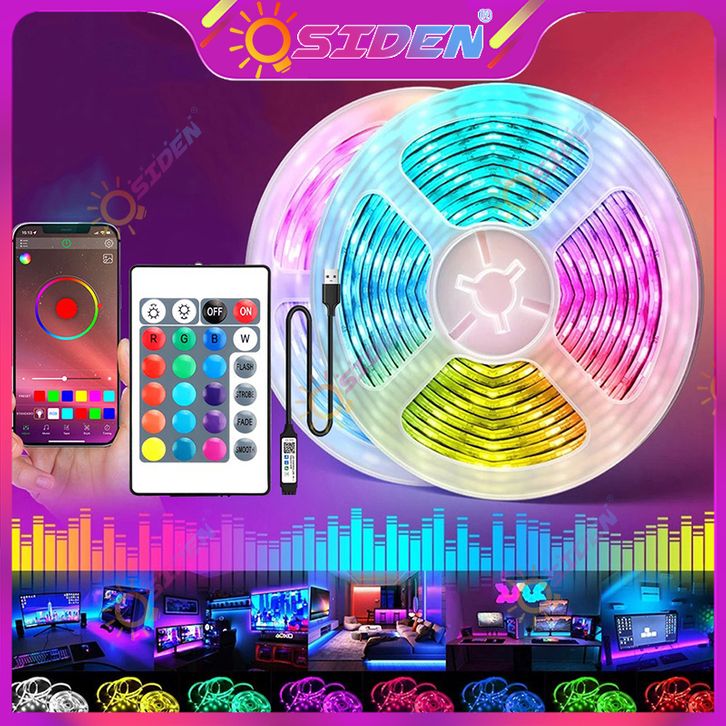 Lampu kamar OSIDEN Lampu Led Strip 5M 10M 15M 20M led strip rgb 2835 Set lengkap adaptor jarak jauh lampu warna warn