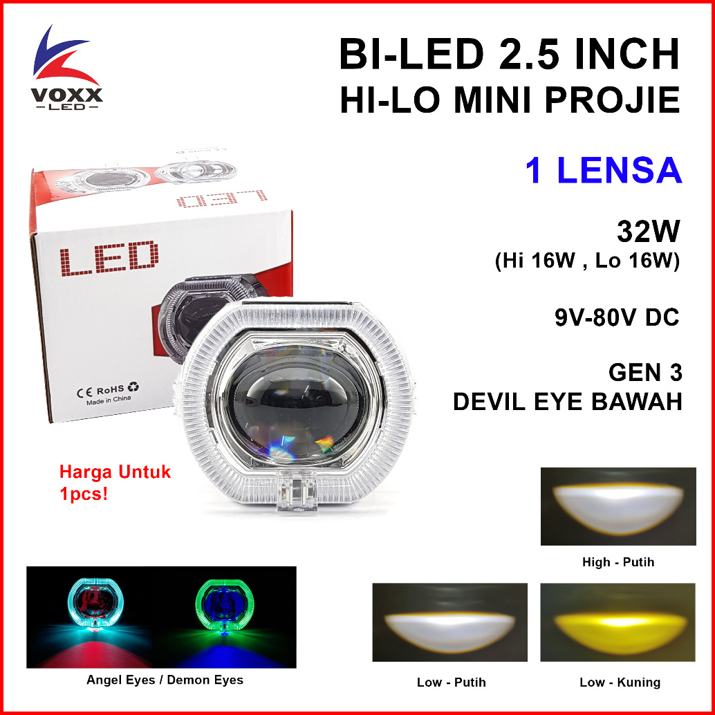 Voxx Led Projie Bi Led Laser Cut Off Hi-lo Mini 2.5 Inch Gen 3 Devil Eyes Ac Dc
