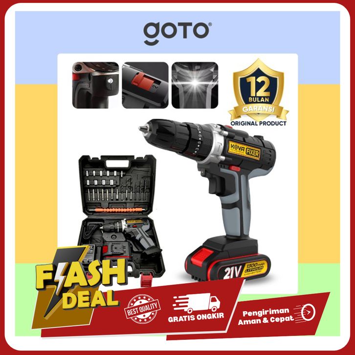 CICILAN/DP% KOVA FIXER CORDLESS DRILL 10MM SET MESIN BOR TANGAN BATERAI TEMBOK 21V - GREY BLACK