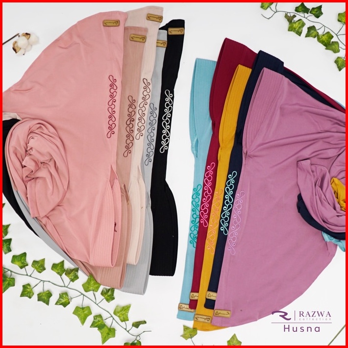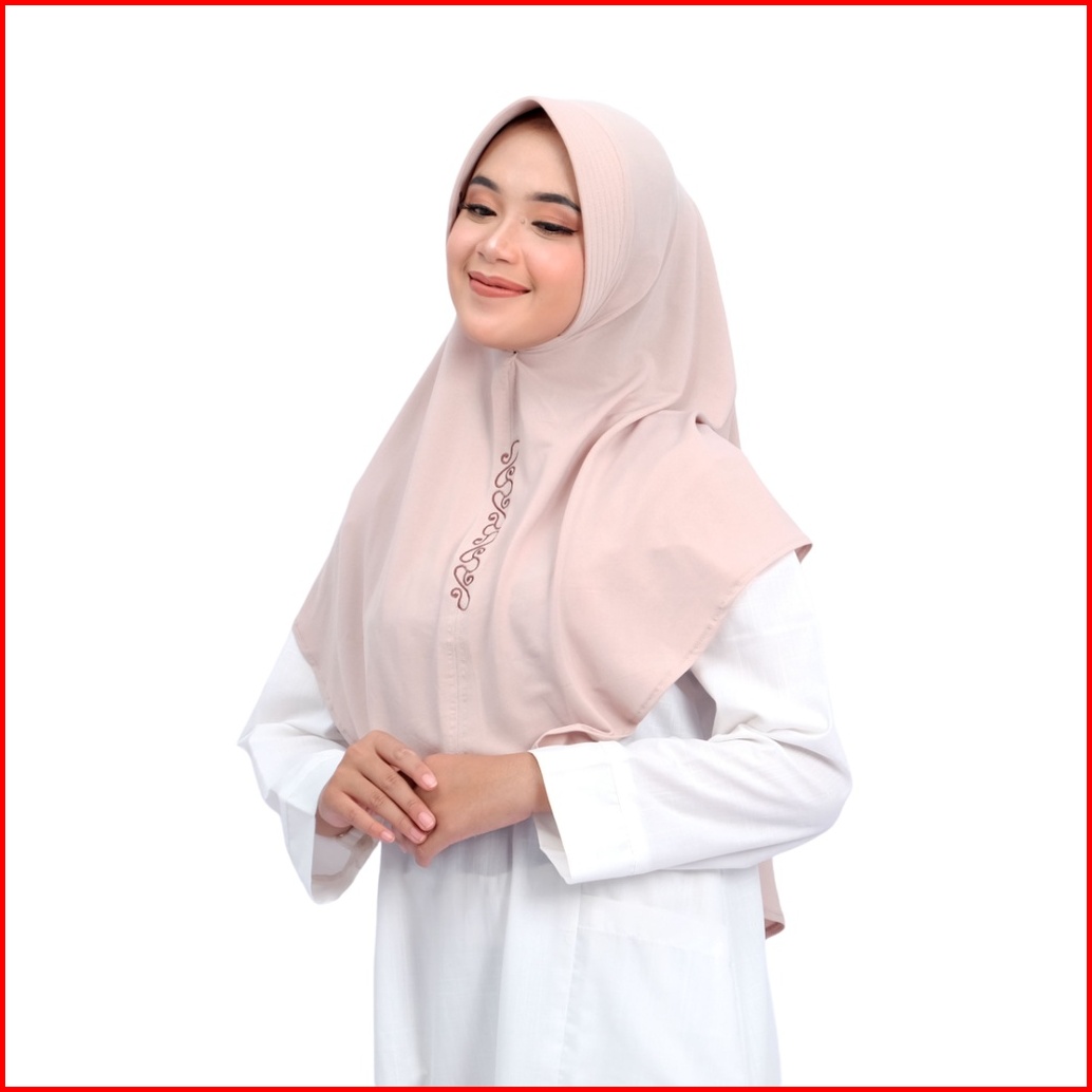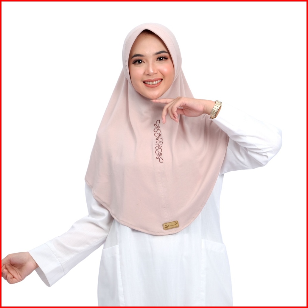 Razwa Husna Bordir - Hijab Bahan Jersey Premium Aksen Bordir High Quality - Beige
