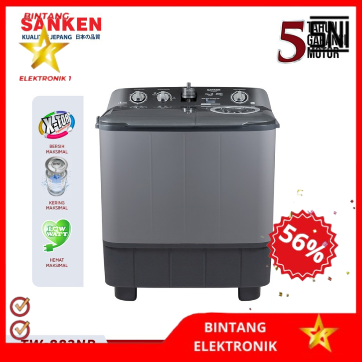Mesin Cuci 2 Tabung Sanken TW-882NP 9Kg Hitam Official Store
