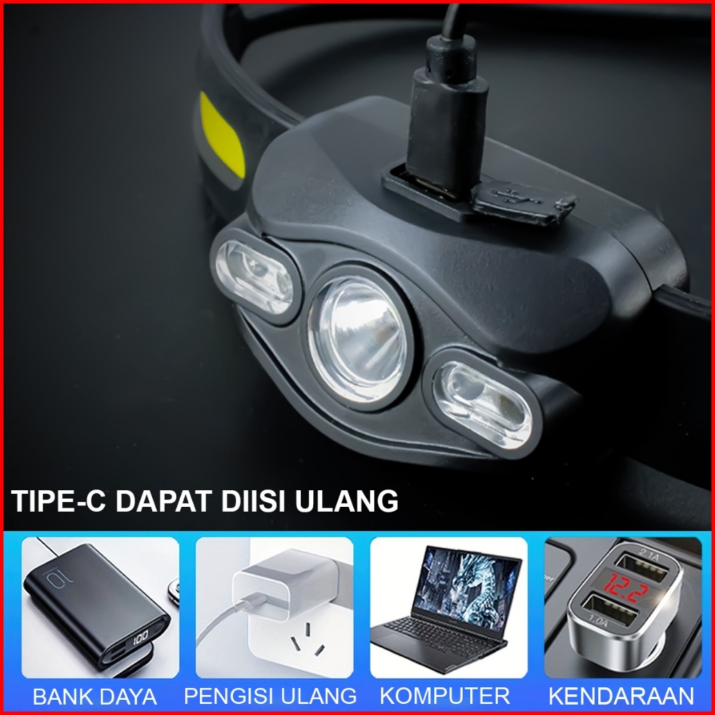 Suksestech Headlamp Outdoor Senter Kepala Cob Cas5 Mode Sensor Tangan Anti Air Ipx 4 Ch 6101