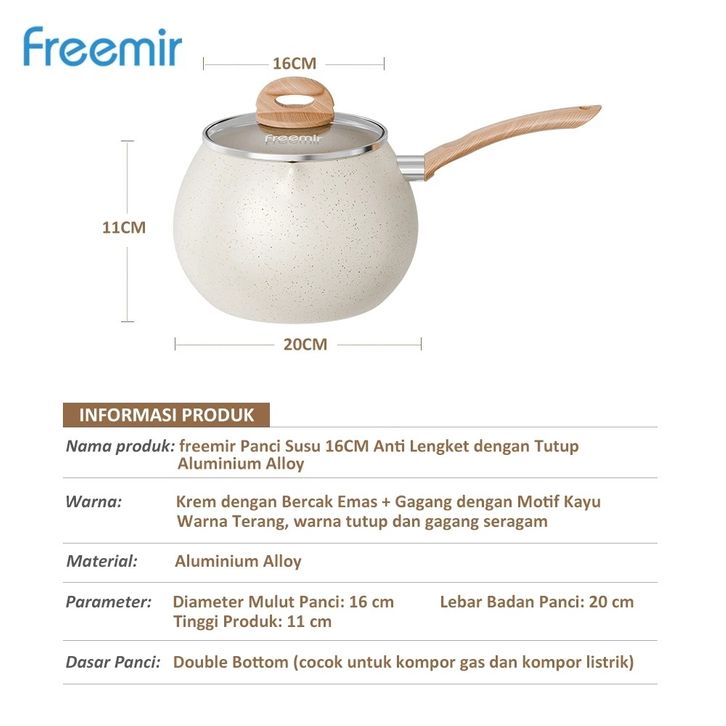 PROMO freemir Panci Gemoy Panci Susu MPASI 16 Cm Anti Lengket Tutup Kaca