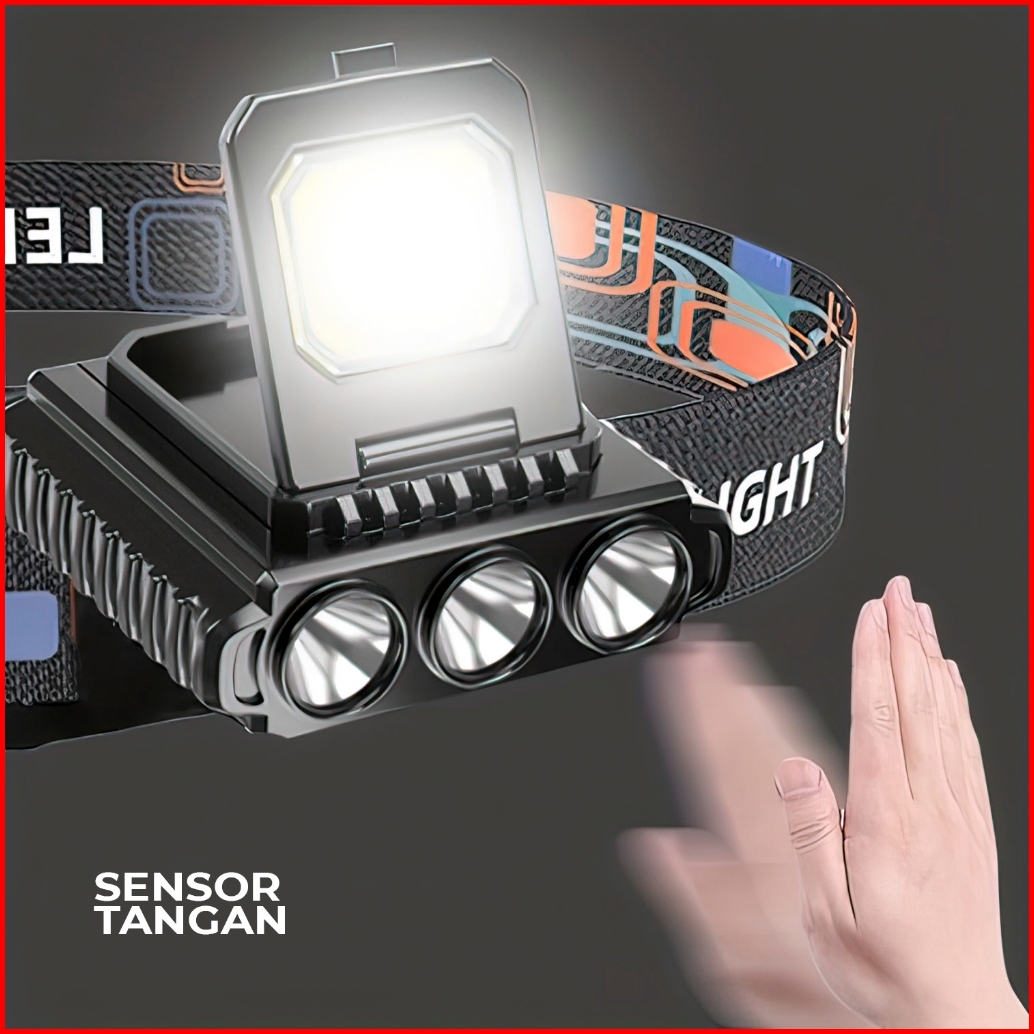 Suksestech Headlamp Cob Led Senter Saku Cas Kepala 4 Mode Sensor Tangan Ly 801s