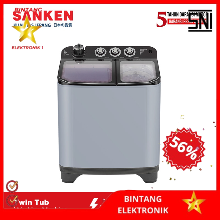 Mesin Cuci 2 Tabung Sanken Twin Tub 9 Kg TW-1155FBK Hitam Official Store