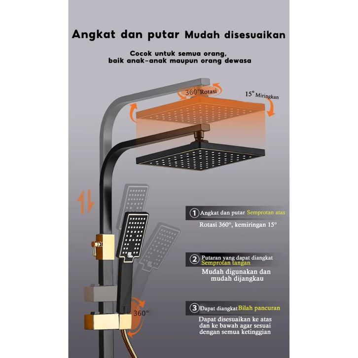 Shower set 4 Fungsi Panas-Dingin Dengan Faucet / Shower Mandi Set Stainless / shower kamar mandi / Shower Tiang Set Pana