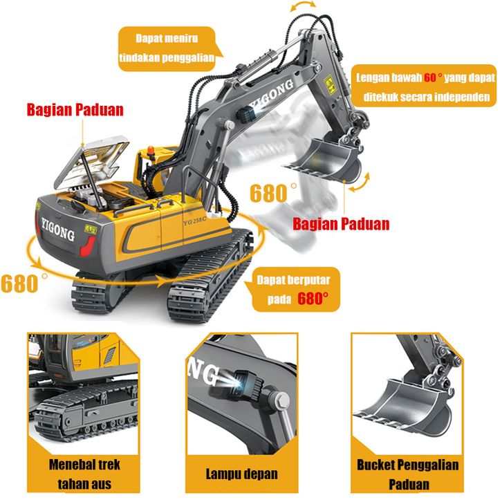 Ferris Wheel 2.4G RC Excavator Damper Mobil Kendaraan Teknik Crawler 11 Channel RC Beko Baterai Cas Tracktor Penggali