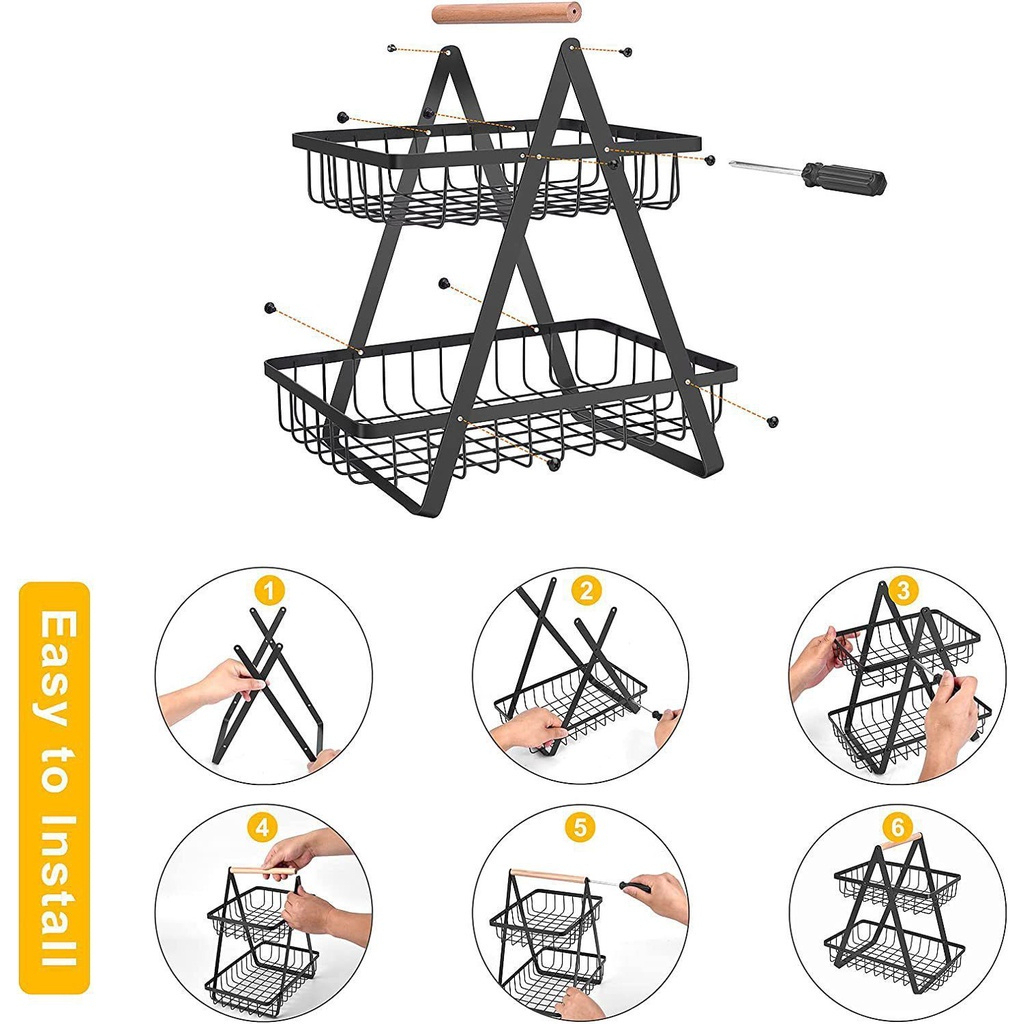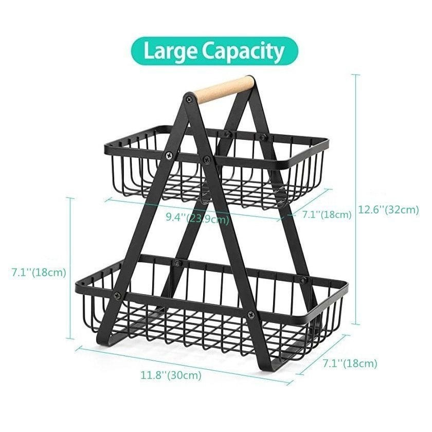RAK DAPUR KERANJANG RAK BUAH BESI RAK DAPUR BESI 2 TINGKAT DAPUR KAYU SERBAGUNA MURAH TERLARIS