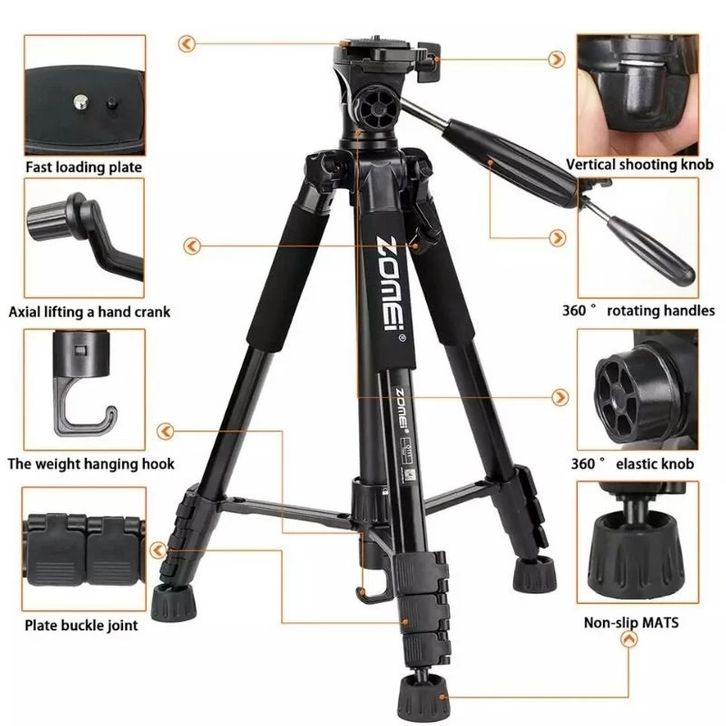 ZOMEI Q111 Profesional Tripod Portable for Kamera DSLR Mirrorless Video Camcorder dan Hp Smartphone