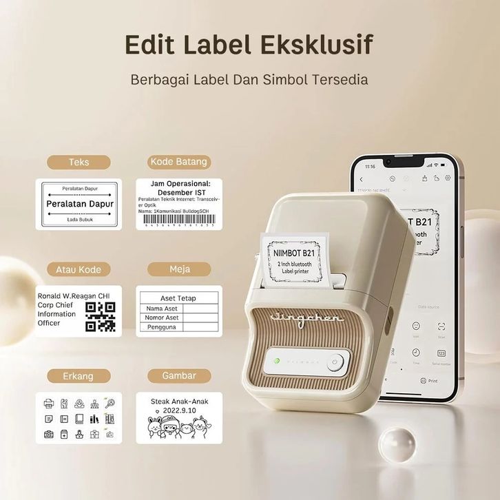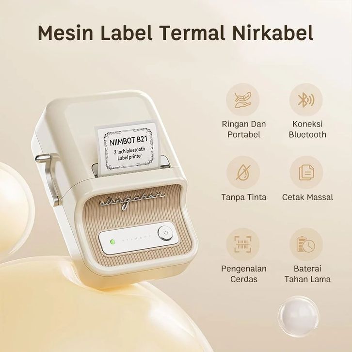 NIIMBOT B21 B1 Pencetak Label Termal, Printer Label Portabel Bluetooth Tanpa Tinta dengan