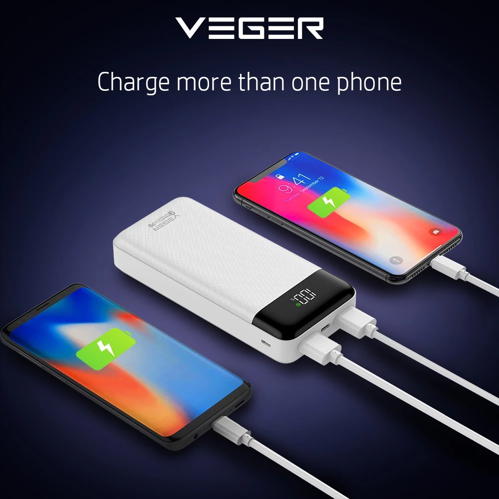 VEGER Powerbank Q21 20000mAh LED Digital Display Fast Charging Quick Charge 22.5W PD 20W Power Bank