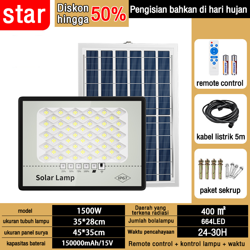 LAMPU TENAGA SURYA 1500 WATT LAMPU SOLAR CELL LAMPU OUTDOOR IP67 TAHAN AIR LAMPU SOLAR PANEL LAMPU SOROT LED LIGHT SURYA