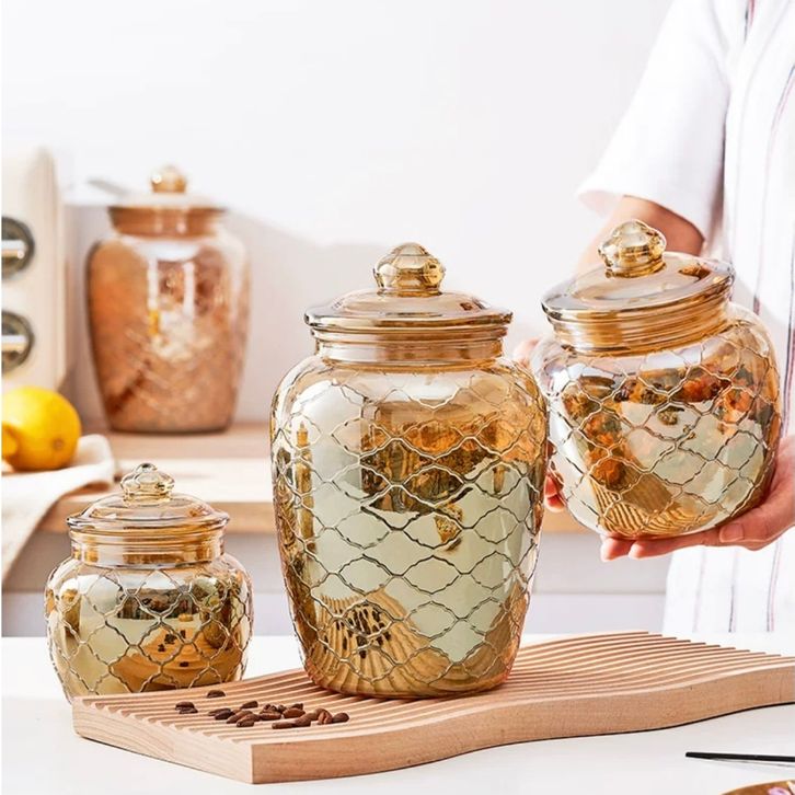 Snack Jar Toples Botol Mahkota Bahan Kaca Transparan Tempat Penyimpanan Snack Makanan Permen Multifungsi
