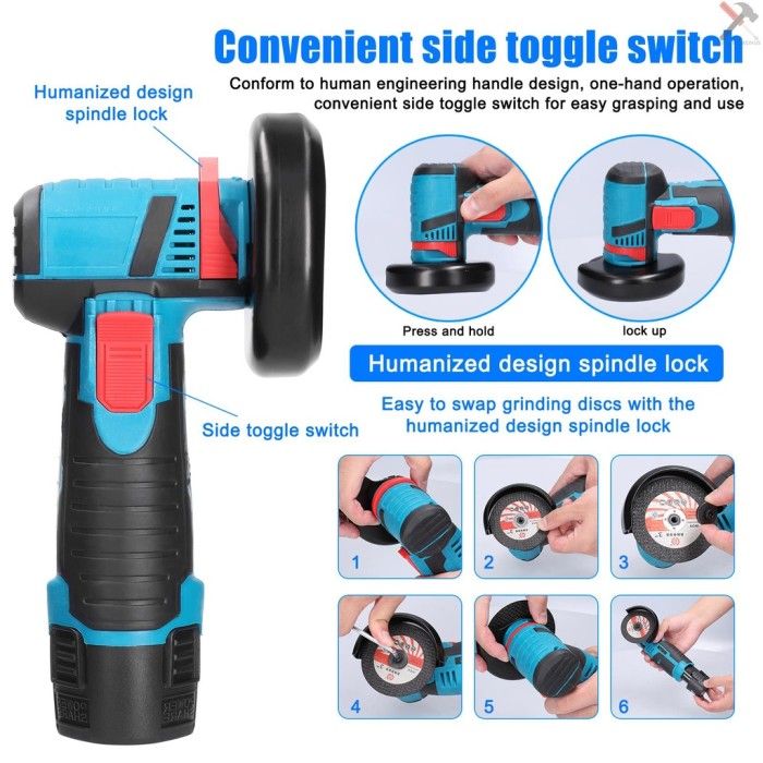 TERLARIS IRONHOOF MESIN GERINDA ANGLE GRINDER BRUSHLESS PENGGILING 12V - 16.8V MERAH, BATERAI * 1