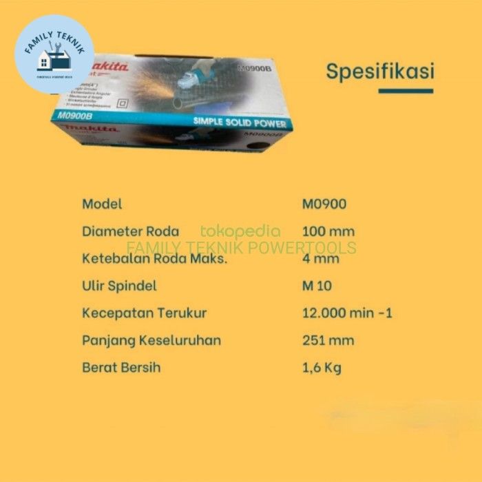 TERLARIS MAKITA M0900B GERINDA TANGAN 4INCH MAKITA SKALAR DORONG MESIN GURINDA