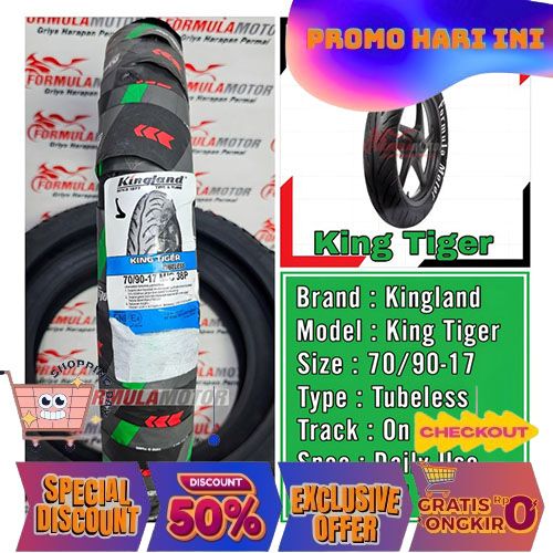 Ban Kingland Tiger Ring 17 Tubeless Ban Motor Bebek Supra Revo Jupiter - 70/90-17, Tanpa Pentil BERKUALITAS