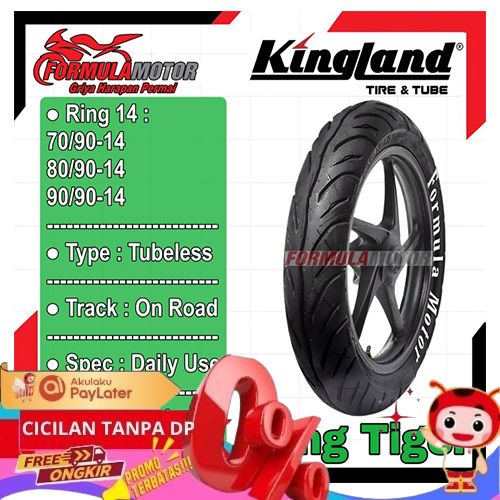 Ban Kingland Tiger Ring 14 Tubeless - Ban Motor Matic Mio Beat Vario - 70/90-14, Tanpa Pentil BERKUALITAS