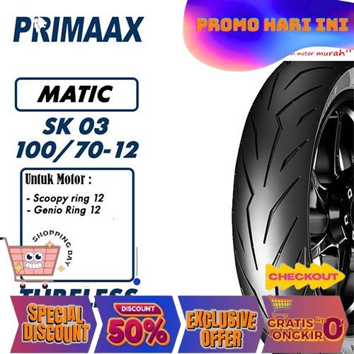 Ban motor matic Primaax SK03 100 70 12 Tubeless Untuk Scoopy Genio BERKUALITAS