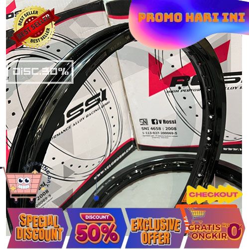 VELG VELK ROSSI RING 18/160-185 BLACK DOFF BLACK GLOWSY RXKING RXSPESIAL SATU PCS BERKUALITAS