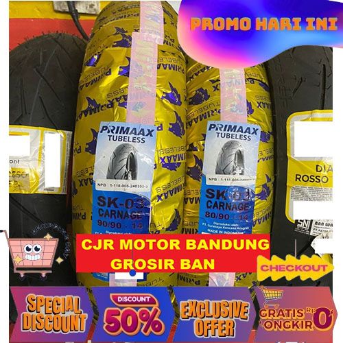 BAN DONAT PRIMAAX SK 03 80 90 RING 14 BAN TUBELESS MOTOR MATIC PRIMAX - 80/90 RING 14 BERKUALITAS